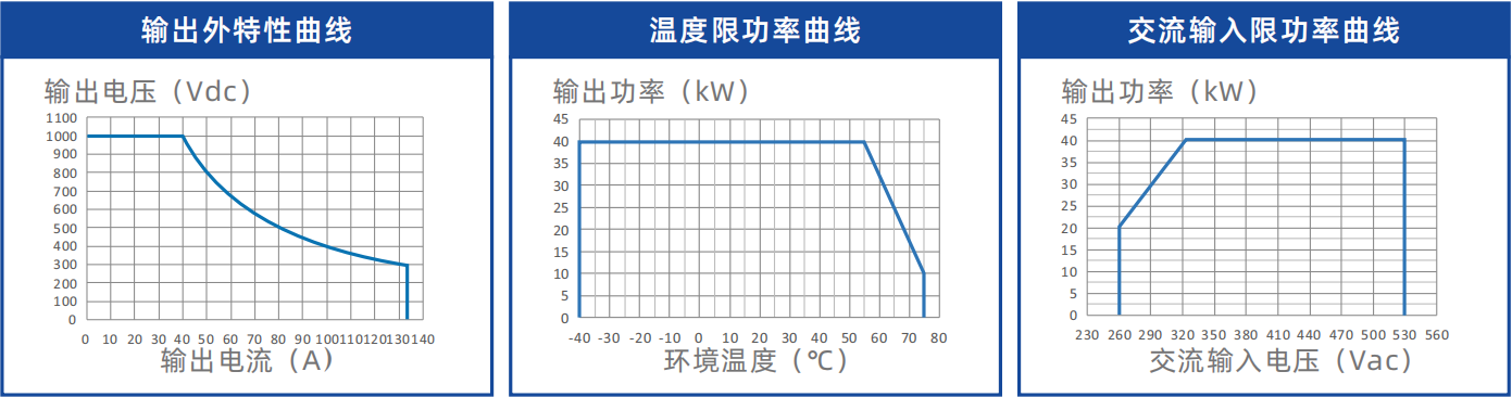 • 超宽恒功率电压输出范围,可300-1000V输出40kW恒功率